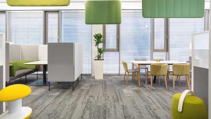 辦公區(qū)域的設(shè)計:設(shè)計師將辦公區(qū)域都安置在靠近窗戶的空間之內(nèi),這也是業(yè)主要求的,因為業(yè)主希望員工可以每天都可以感受到光、感受到外界的陰晴變化,設(shè)計師以白色為主色調(diào),灰色地毯加以輔助,土黃色、木色、淺綠色加以點綴,讓實用與舒適達到極致。
