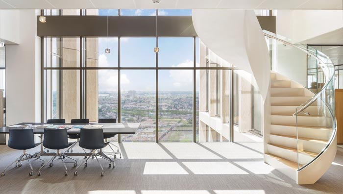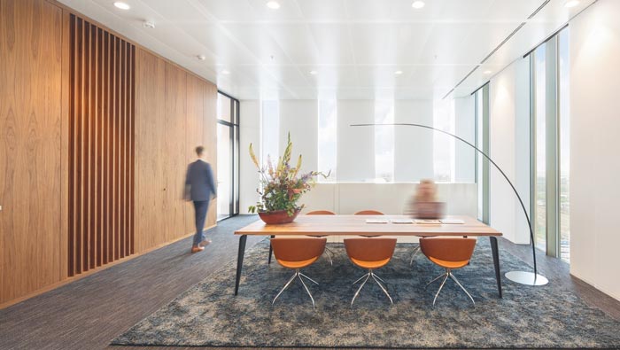 小型會議室的設(shè)計(jì):在我們的想法之中,會議室一般都是封閉式的,但是設(shè)計(jì)師在此處偏偏采用了開放式,這是因?yàn)樵O(shè)計(jì)師希望通過空間來化解人與人之間的壓力,并通過美景來沖散心中淤積的心事,在這樣的空間中,人的思路會越來越清晰。