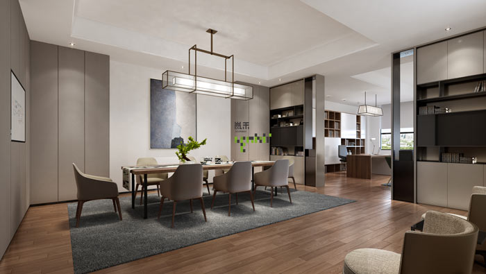 醫(yī)藥副總經(jīng)理辦公室設(shè)計:整個空間由兩個區(qū)域構(gòu)成,內(nèi)部空間為辦公區(qū),外部空間為接待區(qū)、洽談區(qū)、休息區(qū),套間的設(shè)計將一切都囊括在空間之中,讓一切變的簡單、自然。