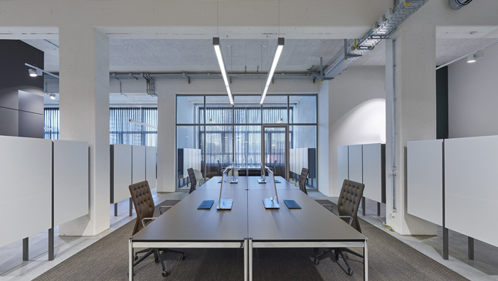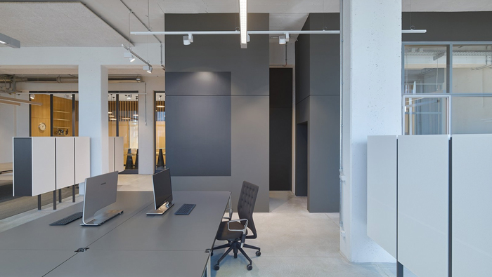 辦公區(qū)域細(xì)節(jié)的設(shè)計:此處可以看出設(shè)計師在辦公桌的選擇上,可謂是煞費苦心,設(shè)計師的目的就是希望簡單可以進(jìn)行到底,設(shè)計師希望為員工打造一個舒適、輕松的辦公場所,辦公桌在員工平時的辦公中意義十分重大,故此設(shè)計師希望員工可以自己去安排辦公桌上的裝飾,這可以最大程度上照顧到每一個人。