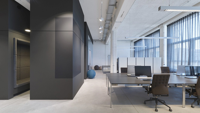 辦公區(qū)域的設(shè)計:開放式的辦公區(qū)域是此空間給人的第一感覺,設(shè)計師在設(shè)計的時候,為每一個員工都預(yù)留了足夠的活動空間,兩邊的儲藏柜隔離了與周邊空間的聯(lián)系,但是又是隔而不分,設(shè)計師需要的就是一個完整的整體,在整體之下去拓展一個個的小空間。