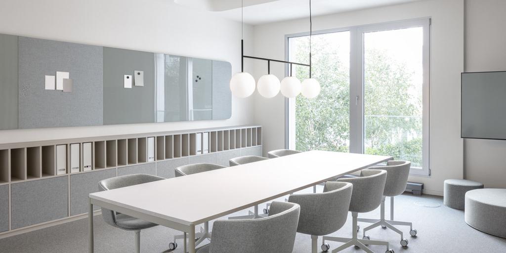 在接待處旁邊,還設立了一個等候區,里面有高背沙發;另外的椅子被分組,以便在大廳的另一部分提供一個更隱蔽的空間。這一部分的空間是四舍五入的技術移動,一個多功能的裝飾項目,可以用來展示一個變化范圍的鼓舞人心的技術展品。