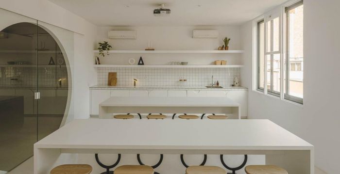 一個長方形的空間,在三個立面上充滿了細(xì)節(jié)和原始的建筑元素和窗戶。包括會議室和服務(wù)區(qū),如廚房、浴室和儲藏室。尋求一種特定的活力,作為舉行非正式會議和電話的空間,同時也可用于演示和臨時展覽。