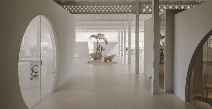 封閉的空間是以微結(jié)構(gòu)的形式構(gòu)想出來的,它相互作用,并創(chuàng)造了一條雕塑通道。圓形的開口會產(chǎn)生門窗,讓光線循環(huán)起來,喚起藝術(shù)和創(chuàng)造的世界。每個模塊都被認(rèn)為是一個小雕塑,同時在構(gòu)成上與其他房間相關(guān)。
