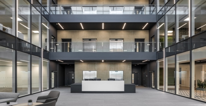 采用了主動(dòng)式設(shè)計(jì),可通往一樓的餐飲區(qū)。我們還確保認(rèn)真實(shí)施所有照明和通風(fēng),以最好地滿(mǎn)足作為一家技術(shù)公司的特定需求,并為他們留出空間來(lái)安裝自己的自定義視聽(tīng)功能。