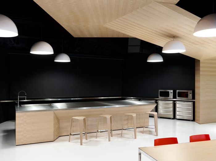 整個設計的空間感很強,線條硬朗,色彩柔和。在會議室和冥想空間內采用了品牌色,更加有品牌感。開放式咖啡廳可以作為大會議室和展示空間使用。