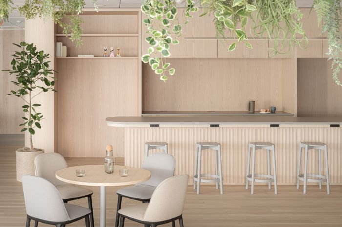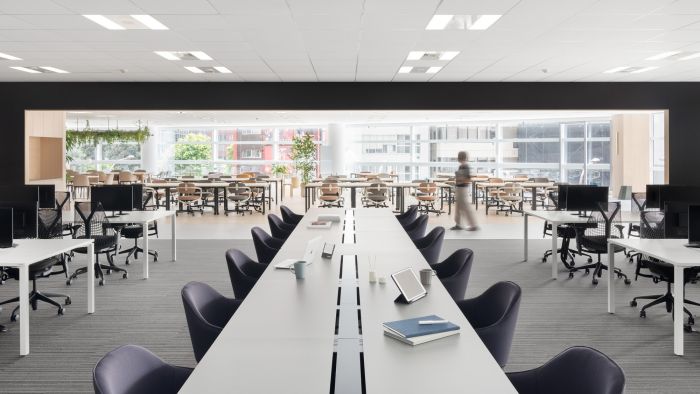 靠近街邊窗戶的區域,被設計成一個鼓勵快速會議和跨部門互動的空間。會議室是公司的形象,旨在表達企業的身份,將墻壁和天花板漆成企業色的弧形照明和生物群落相結合,以表達企業的進步和速度。