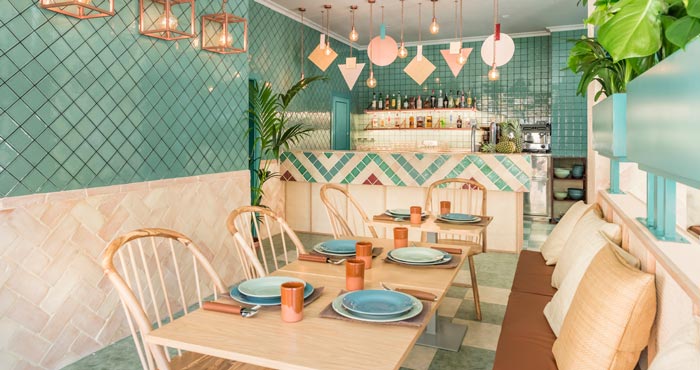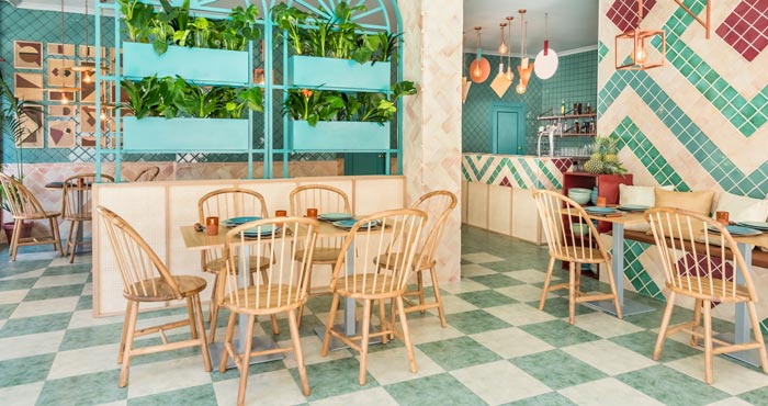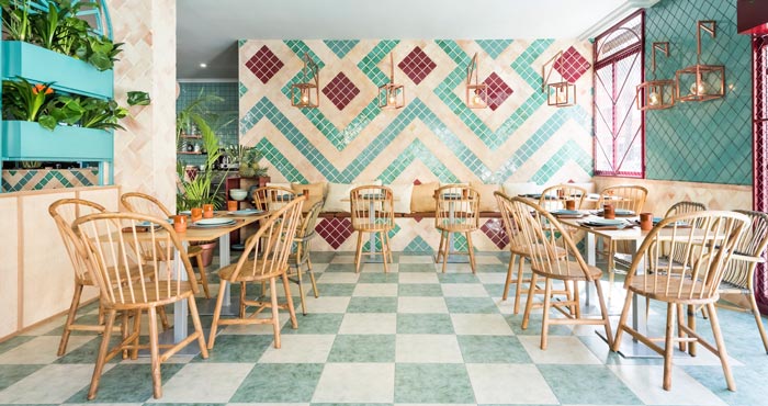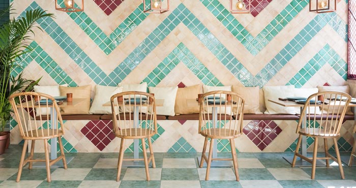 本次為特色餐廳改造項目,設計師以酒椰,土磚,植物和整體裝飾元素為設計主題,希望為客戶帶來一個,與眾不同、且富有創(chuàng)意的餐飲空間。