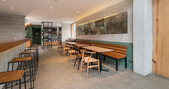 本次為特色餐廳設計項目,餐廳設計面積390平方,廚房采用開放式設計,目的是讓餐廳成為整個烹飪過程的參與者,主餐廳分為兩層。