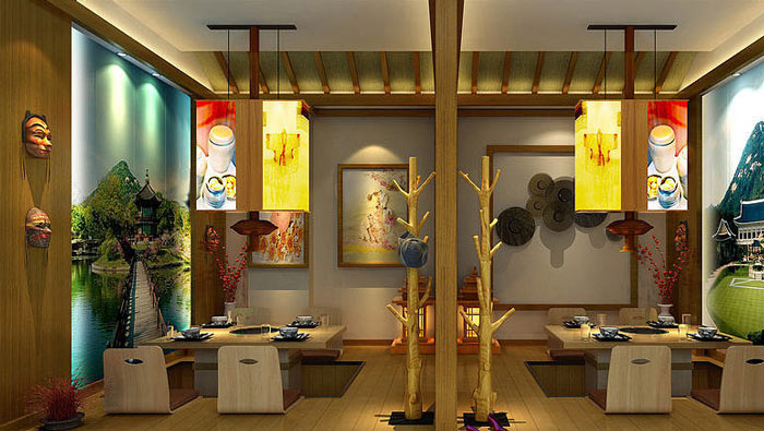 韓式特色餐廳包廂設計:在嘈雜的社會中,偶爾體驗一下不同的異域風情,對于我們來說也是一種放松,會讓我們緊繃的神經放松一下,山水結構的就餐環境,讓生活慢下來。