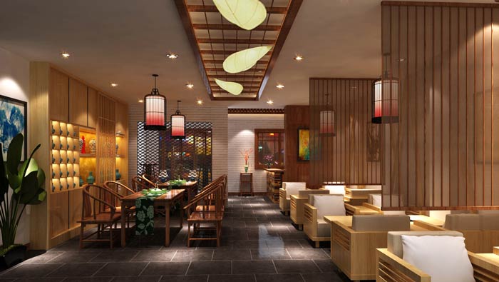 中式茶餐廳飲茶區設計:幾個朋友可以在這里邊飲茶、邊聊天,生意伙伴也同樣可以如此,現在的大部分人都喜歡這樣安靜的氛圍,在這里一切都變的親切起來。