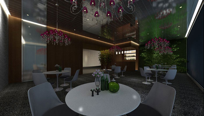 空間材料主要采用:鏡面不銹鋼板、黑金沙理石,鈦金板,綠可木,白色烤漆鋼板,白色石英文化石、20MM鋼化玻璃、烤漆玻璃、玻璃馬賽克等。