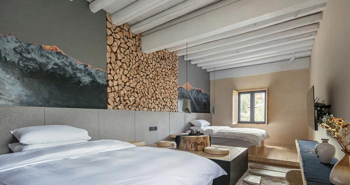 本案簡約民宿設(shè)計(jì)項(xiàng)目介紹結(jié)束,民宿設(shè)計(jì)加入了東方的禪意元素,然后以古城香格里拉的藏式風(fēng)格自然過渡,呈現(xiàn)在客戶眼前的是,散發(fā)著自然之美的簡約民宿。