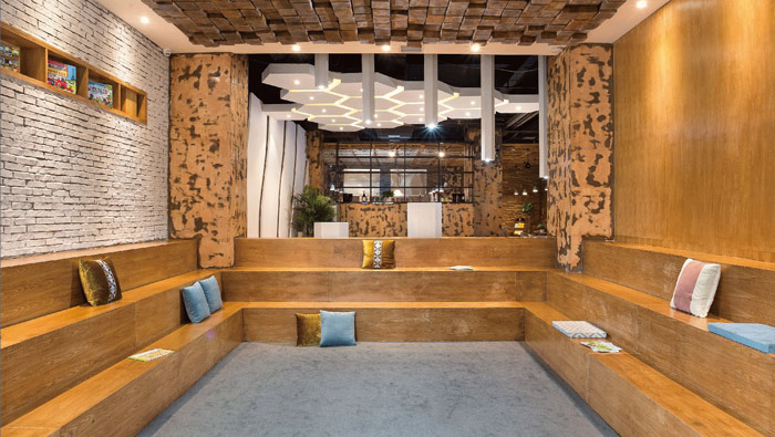 教育培訓(xùn)閱讀區(qū)設(shè)計(jì):在此處設(shè)計(jì)的時(shí)候,設(shè)計(jì)師的想法就是希望閱讀可以和玩耍結(jié)合在一起,設(shè)計(jì)師以四方格做為基本框架,以階梯狀打造閱讀區(qū),中間自然凹陷是孩子玩耍的區(qū)域,勞逸結(jié)合正是此處的最佳說(shuō)明。