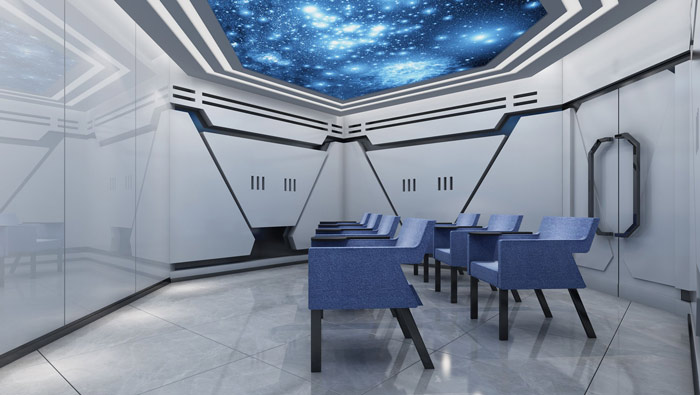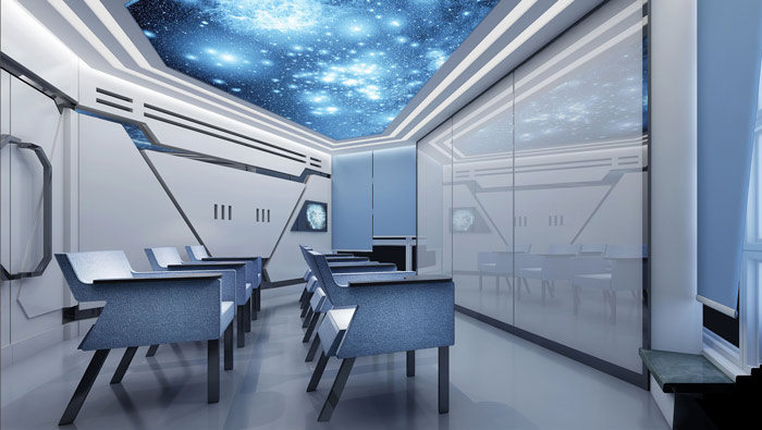 教育機(jī)構(gòu)VIP教室設(shè)計(jì):漫天的繁星讓我們仿佛身在宇宙當(dāng)中,教室被設(shè)計(jì)師設(shè)計(jì)成宇宙飛船的模樣,這樣讓學(xué)員仿佛置身在宇宙的深處,去體會(huì)宇宙變化的萬(wàn)象,一步一步引導(dǎo)學(xué)員進(jìn)行深層次的思考。