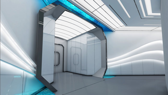 教育機(jī)構(gòu)過(guò)道設(shè)計(jì):當(dāng)我們走進(jìn)內(nèi)部空間之后,會(huì)發(fā)現(xiàn)我們仿佛走進(jìn)了宇宙飛船一般,銀色與星際力量成為設(shè)計(jì)的主色調(diào),就是希望讓想象與創(chuàng)新達(dá)到一致,與企業(yè)教育屬性想和,這樣的設(shè)計(jì)也更能提升孩子的想象力。