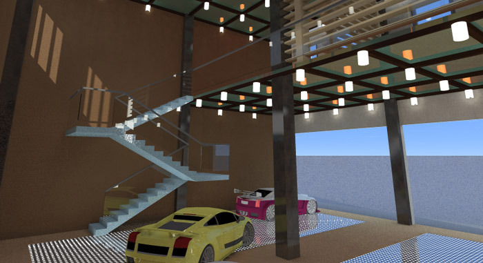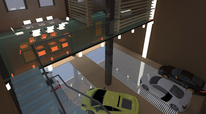 在汽車快修美容店門口區域的閣樓進行了設計,閣樓寬12米、深12米、高9米、閣樓深12米閣前一半、后一半空高9米、閣樓前一半做客戶休息展示區,在設計師的設計下,空間的合理性得到充分的體現。