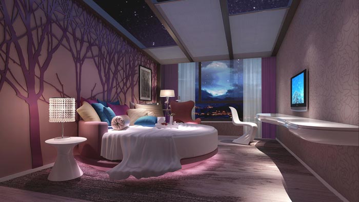 本次為情侶主題酒店裝修設(shè)計(jì)項(xiàng)目,設(shè)計(jì)師共規(guī)劃22間主題客房,目的希望為情侶們帶來(lái)22種不同的體驗(yàn),其中有Hello Kitty風(fēng)的粉紅色夢(mèng)想、有沙灘海洋的無(wú)限風(fēng)光、有穿越時(shí)空的甜蜜之戀、有洞房花燭的甜蜜體驗(yàn),在這里設(shè)計(jì)師希望戀人們可以在不同的客房之中,都體驗(yàn)到不一樣的感受。