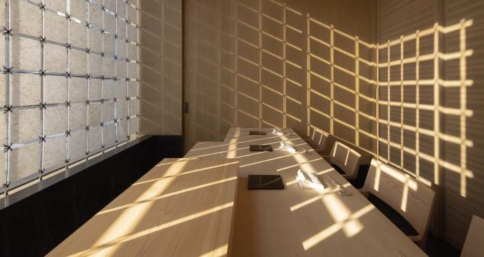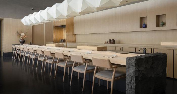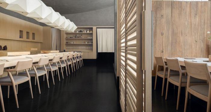 設(shè)計(jì)師將味覺上的奇妙感受用空間的方式敘述,利用原生材料和光線的結(jié)合,打造出淳樸的物性和真摯的情感。空間氛圍以質(zhì)而實(shí)綺、癯而實(shí)腴的風(fēng)格為主,靈感來源于日本的傳統(tǒng)藝術(shù)和自然景觀。