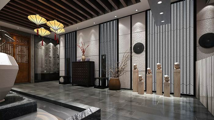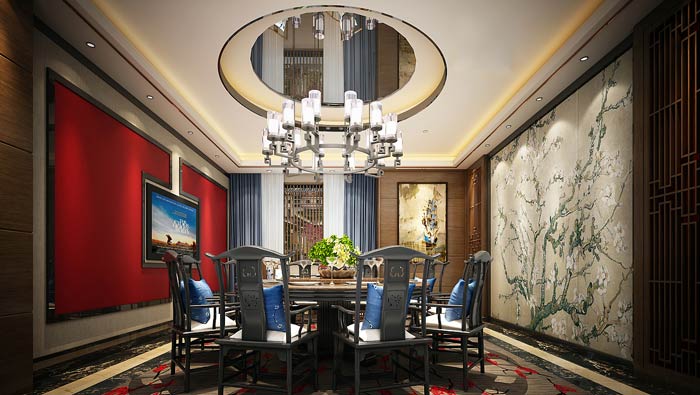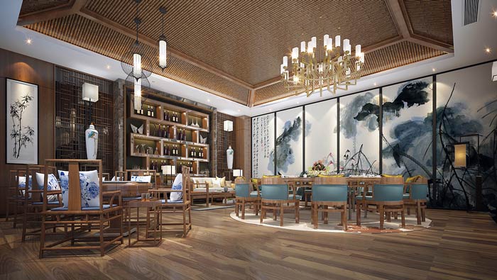 私房菜館客房設(shè)計:這里好似在山水墨畫之中,客戶在山水墨畫之中吃飯,也是一個不錯的創(chuàng)意,這里給人的是一種意境,讓客戶在這里感受到不同,讓客戶在這里感受到畫中的世界。