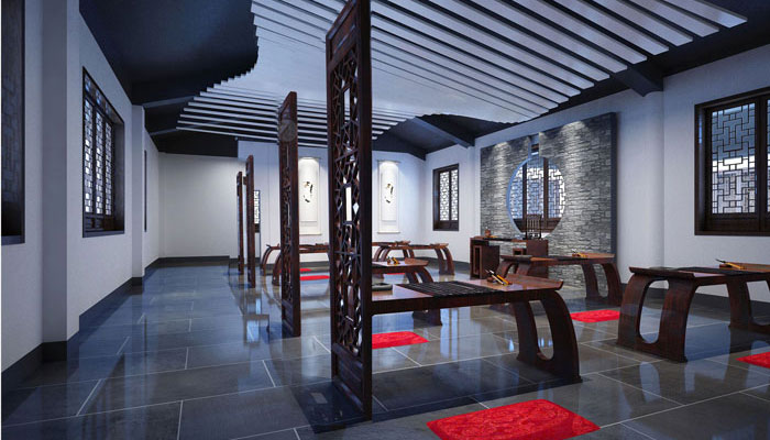 設計理念:設計師在國學館之初,經過和業主之間的交流,了解到業主希望可以在空間內融入禪的定義,希望空間內部可以處處透漏禪機。