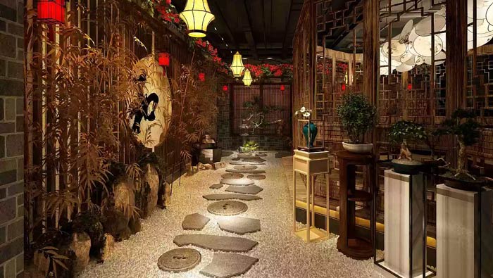中餐廳過道設(shè)計:過道是連接室內(nèi)與室外的重要通道,當(dāng)客戶經(jīng)過這里的時候,仿佛進(jìn)入了古代社會,這里花草樹木與空間融為一體,讓客戶更加親近自然,讓客戶愛上這里。