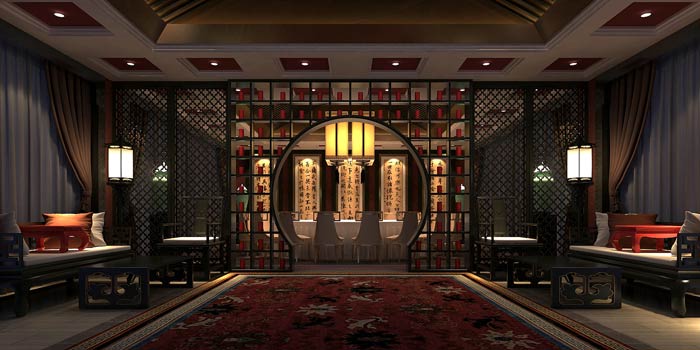 中餐廳包廂休息區設計:就餐結束之后,可以在休息區聊聊天、下下棋,休息、娛樂一番,這里講究的是細節的裝飾,讓客戶在這里感受到家的感覺,讓客戶愛上這里。