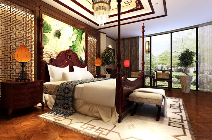 別墅臥室設計特別強調于塑造出溫馨的環境,因此別墅設計師將戶外的自然景觀與室內的諸多古典設計元素進行了完美的融合,這也是案例別墅裝修設計的特色所在。