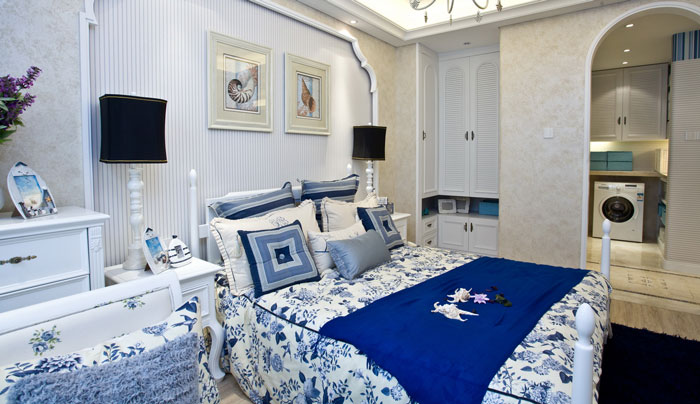 如馳騁在浩瀚的海洋一般,寬敞開闊;藍(lán)色的床品搭配白色的床架,條紋地板或地毯的結(jié)合,將地中海風(fēng)格臥室打造的簡(jiǎn)單舒適。