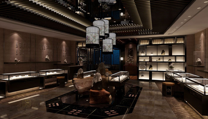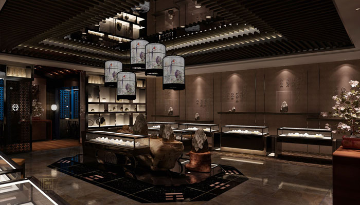 設計理念:此設計同是中國風風格的設計,往往因為品牌訴求的不同,在品牌視覺的表現(xiàn)上面,亦會呈現(xiàn)完全不同的風貌,中國風可以做的古色古香、也可以做的現(xiàn)代簡約,可以雅致、也可以大氣,這都取決于品牌訴求和定位的設定。本珠寶店主營天然水晶珍品,倡導自然和悠閑的生活方式,立志傳播中華福飾文化,秉持自然之道,追求天人一念,經世珍品、代代傳承;對于品牌調性、發(fā)展方向、質感定位進行了全方位診斷。慢生活、雅文化成為品牌氣質的深度演繹方向,將古典雅趣、東方禪意融入品牌的血液,力求將“珍石軒”打扮成氣質婉約、高貴靈秀的“大家閨秀”。中國式審美強調含蓄之美、隱約之美;講究樸茂沉雄的美不是從艷麗中求得,而是從瘦淡中截取。以巧追巧,并不能巧;拙中見巧,方是大巧。色即是空,空即是色,即色即空,淡去色相而得色之燦爛,停留色相之上反失真美真趣。新塑造的珍石軒空間形象內斂古雅,樸實而不失質感,謙和內秀,洗盡鉛華禪意現(xiàn),以新形象面世的珍石軒立于品牌之林必如傲骨高士,風華無二!
