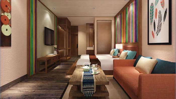 古風+現(xiàn)代客房的設計:此處可以感覺到濃郁的古色古風,雖然不明顯但是卻總有這樣的感覺,現(xiàn)代風的融入給人一種眼前一亮的感覺,當客戶拖著勞累的身體進入客房之后,一杯濃郁的茶香會讓人們瞬間感覺精神起來,靜靜的坐下來品一杯茶水,一身的疲憊盡皆消去。